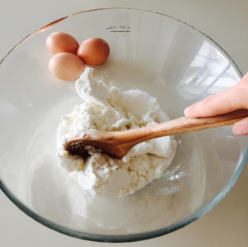 ingredienti: 250 gr di farina , 300 gr di ricotta , 250 gr di zucchero , 3 uova , scorza grattugiata di un limone , 1 bustina di lievito , 1 noce di burro , 1 pizzico di sale